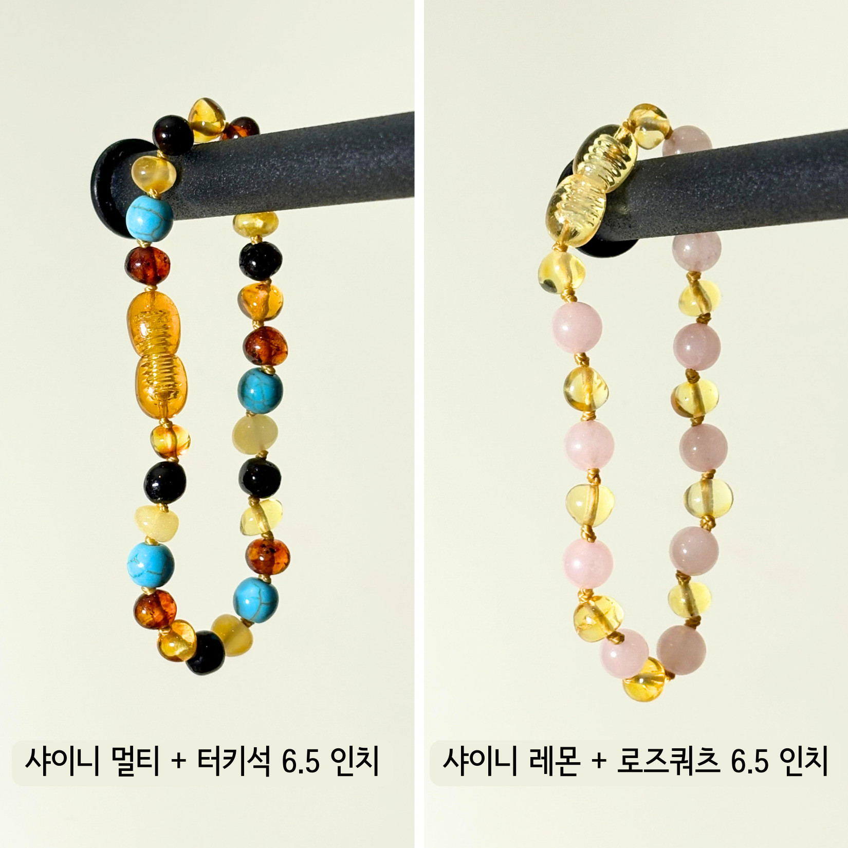 호박 + 원석 믹스 팔찌와 목걸이 (키즈 & 성인)